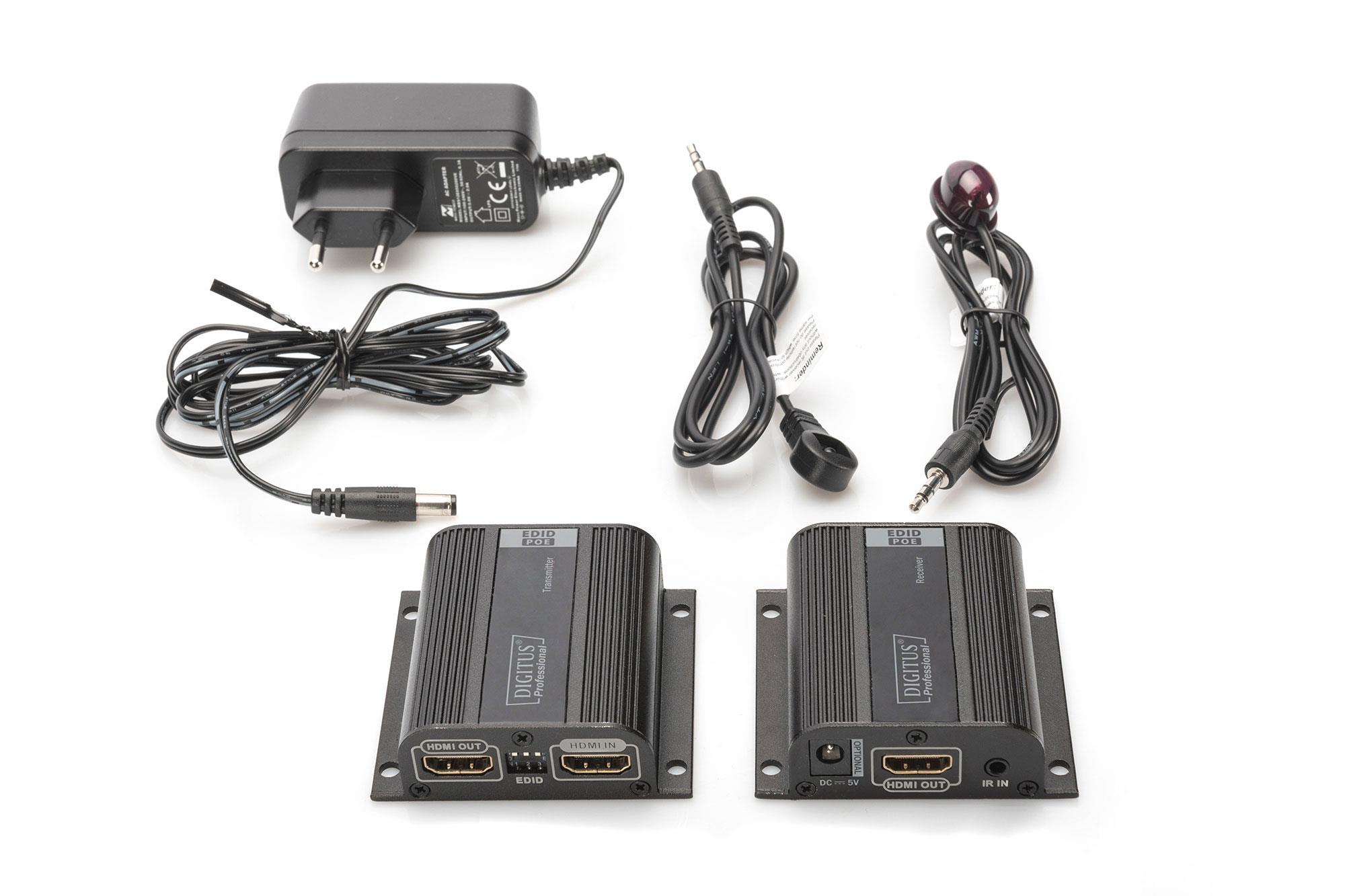 Przedłużacz/Extender DIGITUS HDMI do 50m Cat.6/7 UTP, 1080p 60Hz FHD, HDCP 1.2, IR, audio(zestaw)