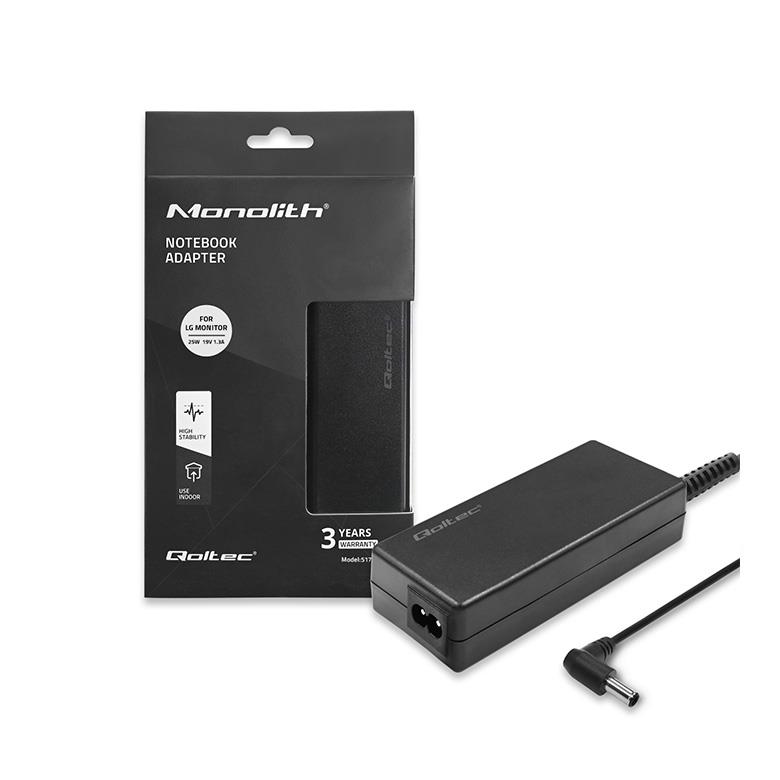 Zasilacz sieciowy Qoltec do monitora LG 25W | 19V | 1.3A | 6.5*4.4 | +kabel zasilający - OTW OPAK